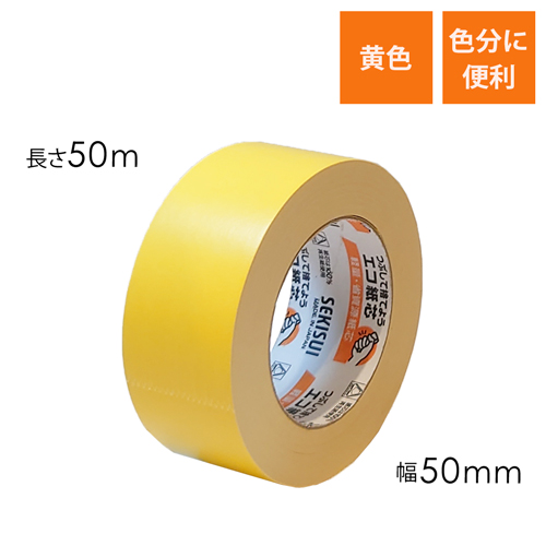 識別梱包や目印にも便利な黄色のクラフトテープ(紙製ガムテープ)。手で切れて引き出しやすく、宅配60~80サイズなどの軽・中量物におすすめです。