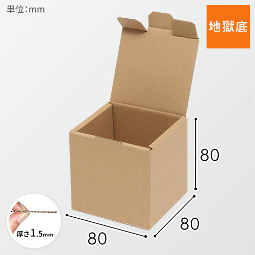 内寸サイズが80×80×80mmで組立式(フタ・身一体式)のキューブ型ギフトボックス。使いやすい立方体でプチギフトのパッケージ、梱包などに最適の箱です。