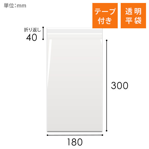 180mm×300mmのテープ付きOPP袋です。0.03mm厚の透明でパリッとした質感が特徴。小物やパーツなどの梱包に最適です。