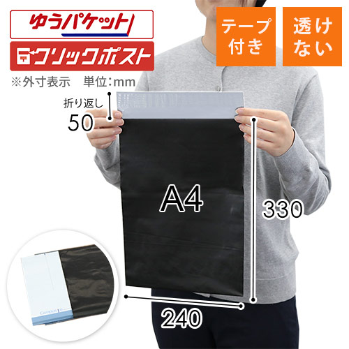 ゆうパケットに対応!水に強いポリエチレンを使用したA4サイズの宅配ビニール袋。直輸入のため安価でお買い求めいただけます。中身が透けない仕様です。