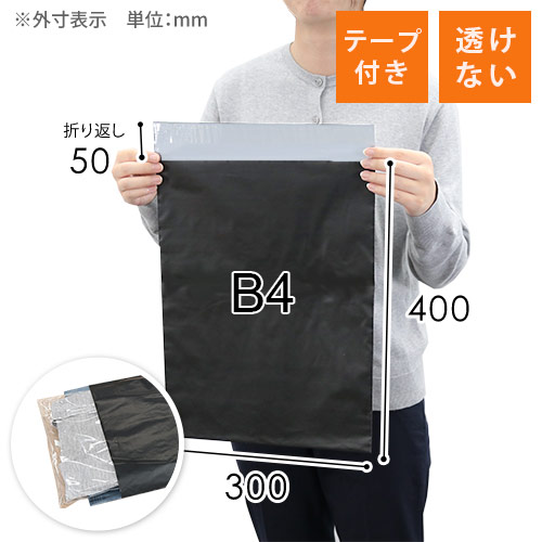 水に強いポリエチレンを使用したB4サイズの宅配ビニール袋。直輸入のため安価でお買い求めいただけます。中身が透けない仕様です。
