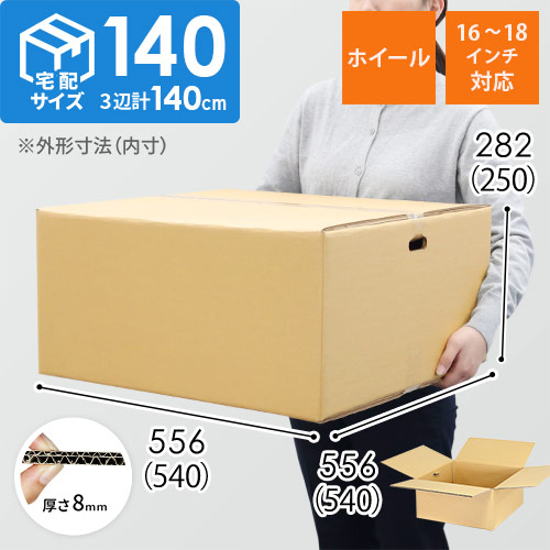 16~18インチサイズの自動車のホイール1個の発送に最適なダンボール箱。宅配140サイズに対応しています。材質は「8mm W/F(K5×K5)」と丈夫。