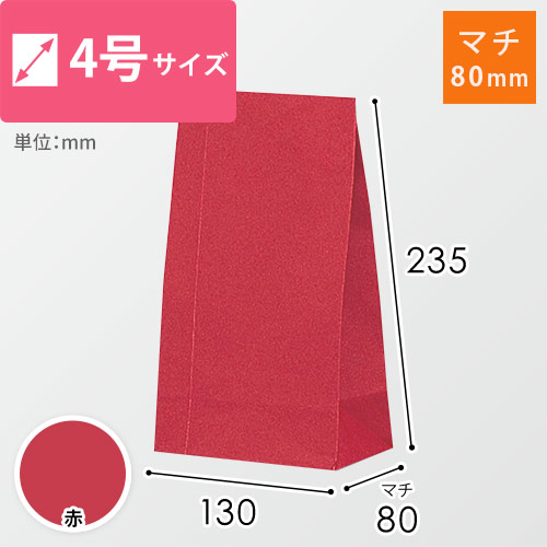 • 角底袋(赤・幅130×マチ80×高さ235mm)