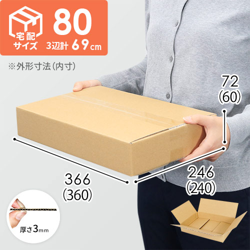 宅配80サイズ対応のダンボール(三辺合計80cm)。オーダーメイドで人気のサイズを商品化しました。食品や雑貨などの商品発送におすすめです。