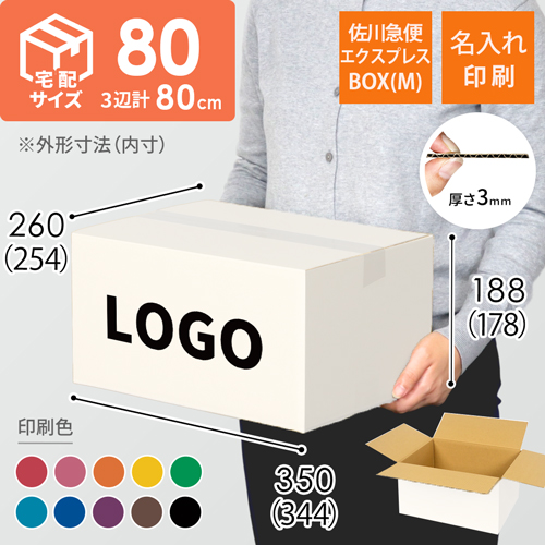 宅配80サイズの白色ダンボール箱に、お客様のロゴや社名などを名入れ印刷します(80Aと同サイズ)。