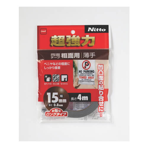 幅15mm×長さ4m×厚さ0.8mmでグレーの両面テープ。凹凸面やざらざらした面でもしっかり接着いただけます。合板やベニヤなどに。