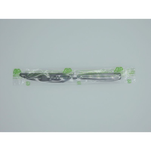 バイオマス原料25%配合のエコな使い捨てナイフ。衛生的な個包装で、テイクアウトやデリバリーに最適です。