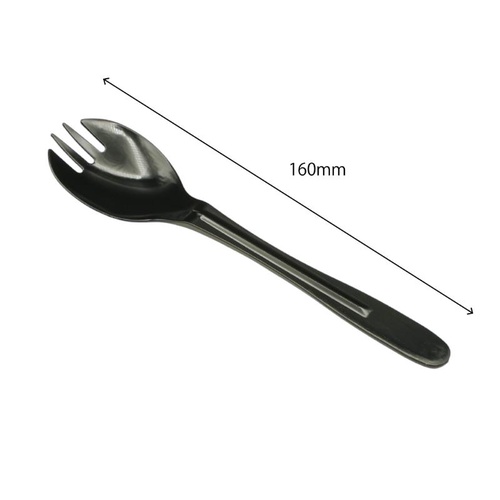 使い勝手の良い一体型フォークスプーン。ブラックカラーの個包装で、テイクアウトやイベント、オフィス利用に最適です。