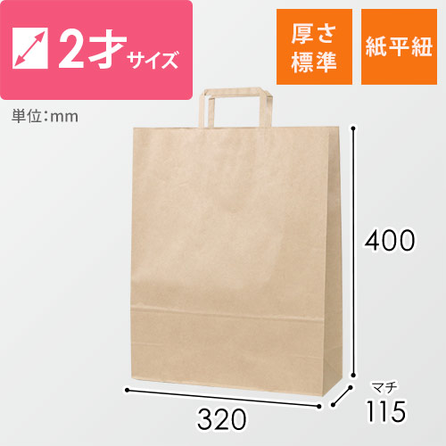 定番仕様で持ちやすい!クラフト手提げ紙袋。定番の材質を使用しており丈夫です。アパレルショップでのお持ち帰りにいかがでしょうか。