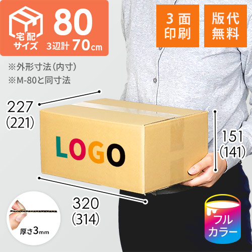 【印刷サンプル】【ロゴ印刷・フルカラー・3面】宅配80サイズ ダンボール箱