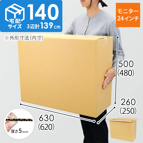 24インチのPCモニターやディスプレイの発送に最適な宅配140サイズのダンボール箱。リモートワーク用品の梱包やお引越しのほか、大きな商品の通販発送にもちょうど良いサイズです。