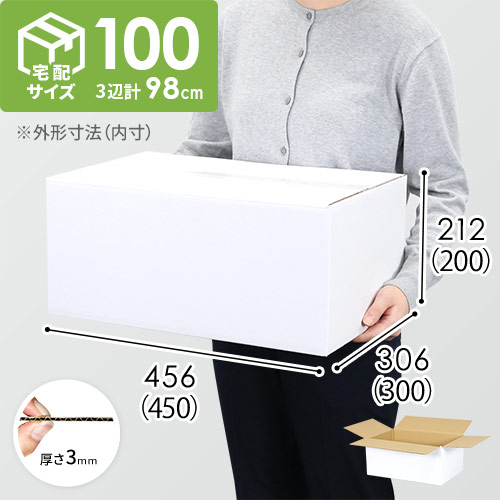 【宅配100サイズ】生活家電、AV機器、PC・周辺機器等向けダンボール箱(450×300×200mm)3mm B/F 白C5×C120