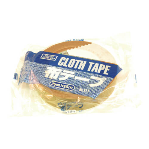 幅25mm×長さ25m×厚さ0.31mmでクリーム色の布テープ。糊厚があるので粗面によくなじみます。重ね貼りや油性ペンでの文字の記入が可能。手で切れるので作業性抜群です。