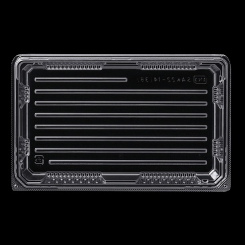 エフピコ製、風紋木目緑の発泡トレー。食材の魅力を引き立てる和の風合いで、生鮮・惣菜の陳列を美しく彩ります。