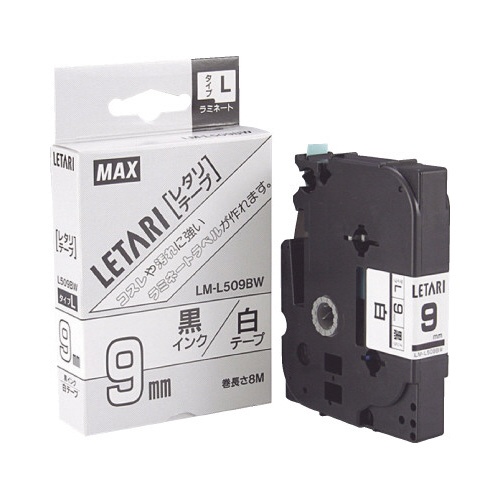 汚れに強く丈夫なラミネートテープ。ビーポップミニ専用9mm幅、白地に黒文字、長さ8mです。