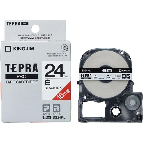 キングジム製テプラPROテープ ロングタイプ 白ラベル 24mm幅 黒文字 16m 5個セット。使用済みカートリッジ回収でエコにも貢献!
