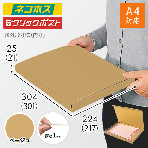表面にベージュ色のカラーライナーを使用したメール便ケース。高級感ある見た目に仕上がるため、通販商品の発送やパッケージなどにおすすめです。