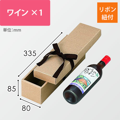 サイズが335×80×85mmでロングワインが1本入る大きさのギフトパッケージ。お菓子、雑貨を入れても!ヒモ付きなので、 包装紙無しでもお使いいただけます。