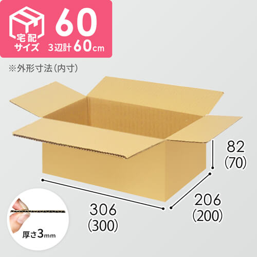 宅配60サイズ対応のダンボール(三辺合計60cm)。オーダーメイドで人気のサイズを商品化しました。小物や雑貨などの商品発送におすすめです。