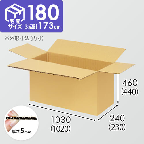 1100×800mmのカゴ台車に3面×4段積める、納品向けダンボール箱。内寸は1020×230×440mmで、宅配180サイズに対応しています。