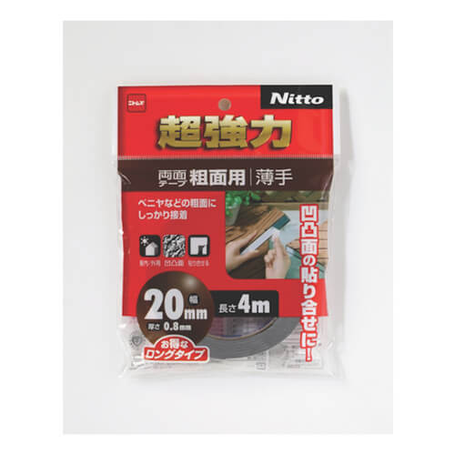 幅20mm×長さ4m×厚さ0.8mmでグレーの両面テープ。凹凸面やざらざらした面でもしっかり接着いただけます。合板やベニヤなどに。