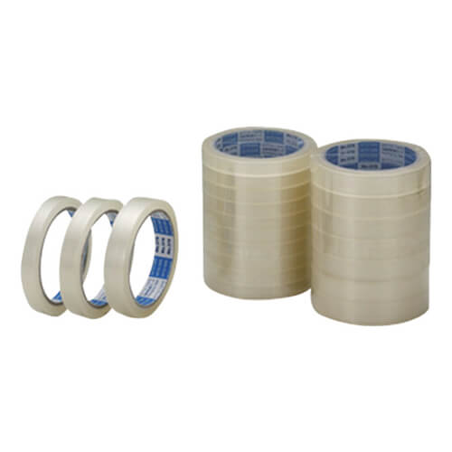 幅18mm×長さ50m×厚さ0.045mで透明のOPPテープ。卓上テープカッターの使用時にカットしやすくなっています。粘着剤は光や熱などで劣化・変色しにくく、有機溶剤不使用のエコ仕様です。軽梱包用に。