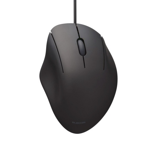手になじむMサイズ、静音設計で快適操作。ブラックカラーがおしゃれな有線3ボタンマウスです。