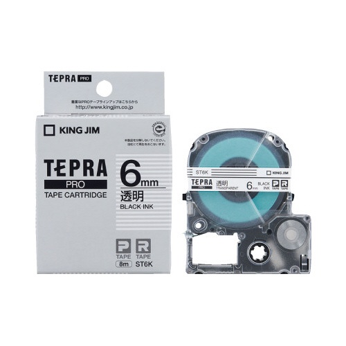 貼ったものの下地や背景を活かせる透明ラベル。テープ長さ8m、テープ幅6mm。黒文字。