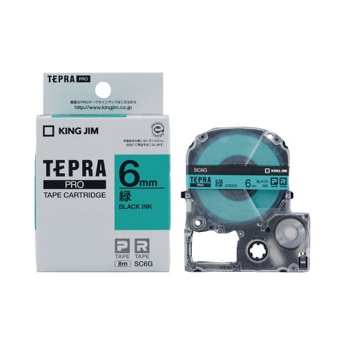 キングジム テプラPROテープ パステル緑ラベル 幅6mm、長さ8m。黒文字。使用済みカートリッジ回収で環境にも配慮!