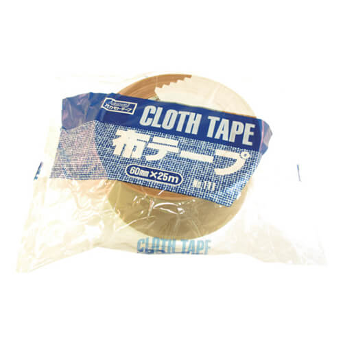 幅60mm×長さ25m×厚さ0.31mmでクリーム色の布テープ。糊厚があるので粗面によくなじみます。重ね貼りや油性ペンでの文字の記入が可能。手で切れるので作業性抜群です。