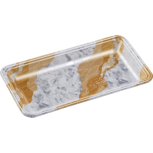 エフピコの上品な発泡トレー『いろは金』。軽量なPSP素材が食材の価値を高め、和洋問わず高級感ある盛り付けを叶えます。