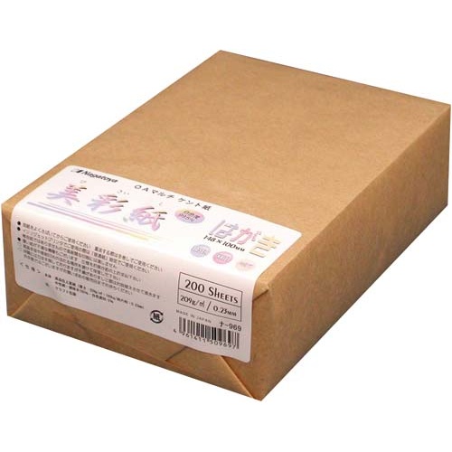高白色度99.5%のケント紙はがき。美しい発色で、レーザー・コピー・インクジェットに対応。200枚入。