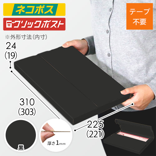 表面に黒色のカラーライナーを使用したメール便ケース。高級感ある見た目に仕上がるため、通販商品の発送やパッケージなどにおすすめです。