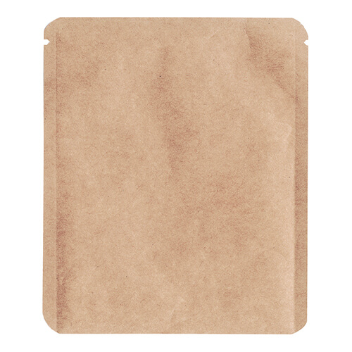 50g用のクラフト三方袋。内側アルミ蒸着で、長期保存も可能。上部を熱シールすれば脱酸素剤対応です。コーヒー豆や茶葉などのパッケージに。