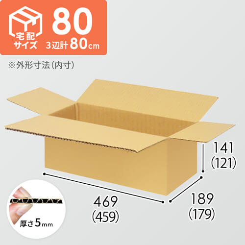 宅配80サイズ対応のダンボール(三辺合計79cm)。オーダーメイドで人気のサイズを商品化しました。5mm厚なので重量のある商品の発送にも対応可能です。