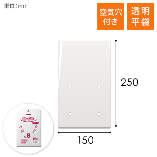 厚さ0.02mmの透明なOPP防曇袋(空気穴あり)です。曇りにくく、水滴がつきにくいので、農産物・青果物の包装に適しています。