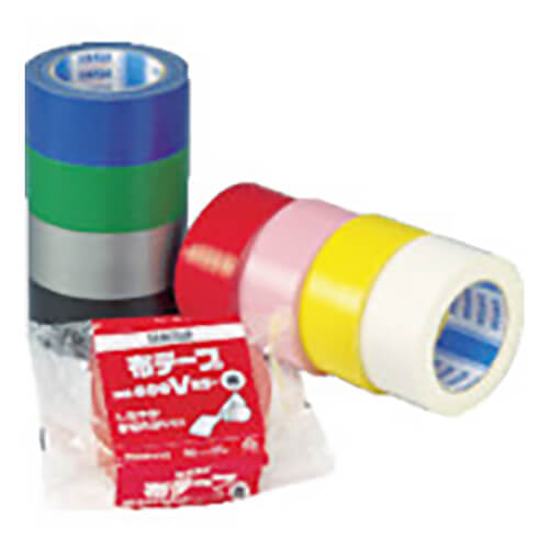 幅50mm×長さ25m×厚さ0.22mmで黒色の布テープ。カラータイプで、商品に合わせたイメージ重視の梱包や色分けによる梱包物の識別に便利です。色違いのご用意もございます。