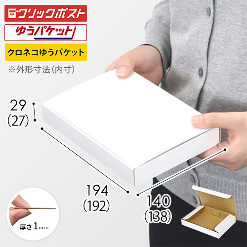 クリックポスト・ゆうパケット・定形外郵便に対応!厚さ3cmの白色N式メール便ケース。