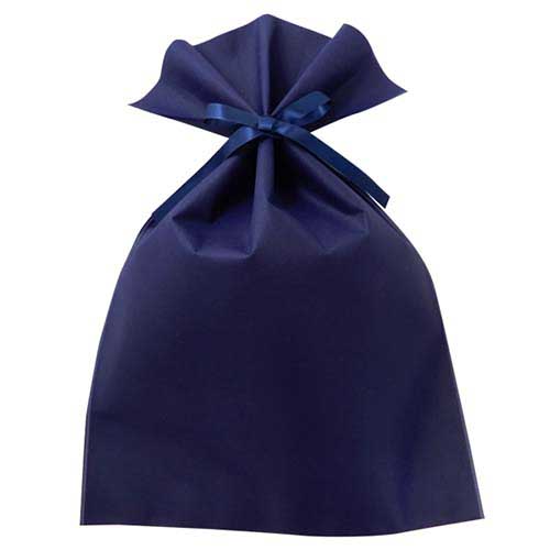 両面不織布製の厚手でシンプルな巾着袋。あらかじめ二つ折りのリボンが通っているのでラッピングも簡単です。お菓子、小物などのギフトラッピングに!