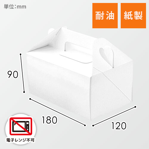 手提げケーキ箱。サイズは150×210×90+50mmで、テイクアウトやパッケージに適しています。