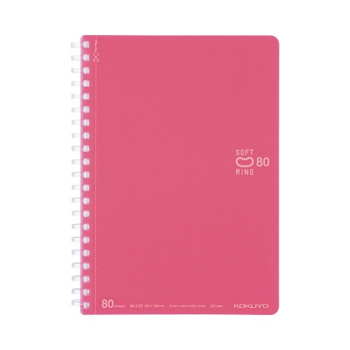 コクヨのソフトリングノート。B6サイズ、ドット入りB罫、80枚。やわらかいリングで心地よい書き心地を実現!