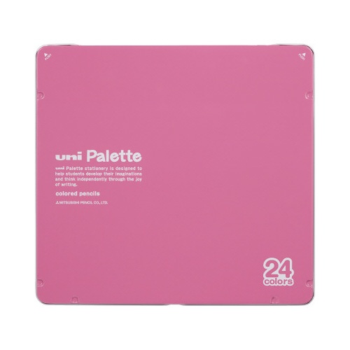 三菱鉛筆の色鉛筆パレット、ピンクの24色セット。鮮やかな発色で、お子様の創造力を豊かにします。