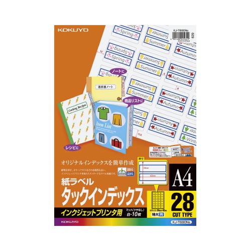 A4サイズ、28面カットのインクジェットインデックスラベル。青枠で識別しやすい!10枚入り。