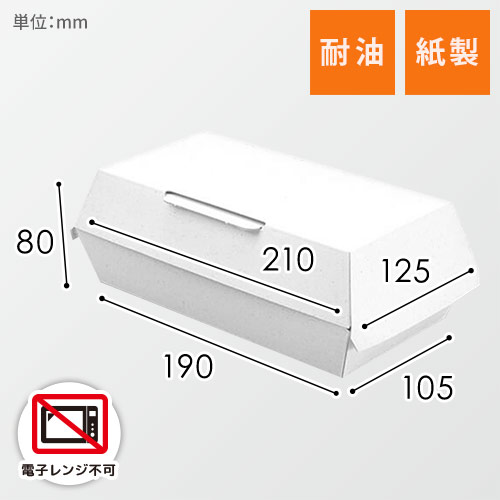 環境に優しいエコパーム製ボックス。サイズは天面210×125・底面190×105・高80mmで、テイクアウトやパッケージに適しています。
