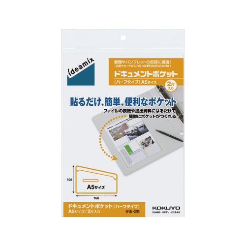 A5サイズのドキュメントポケット。裏面に糊がついており、ノートなどに貼って使えます。名刺やカードの収納に便利!