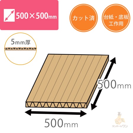 長さ500×幅500mm(5mm厚)の板ダンボール。学校の工作・文化祭で人気のサイズです。タイヤの梱包にもご利用いただけます。