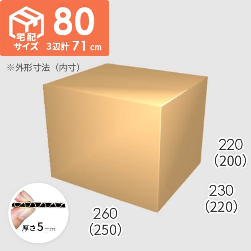 宅配80サイズ対応のダンボール(三辺合計71cm)。オーダーメイドで人気のサイズを商品化しました。5mm厚なので重量のある商品の発送にも対応可能です。