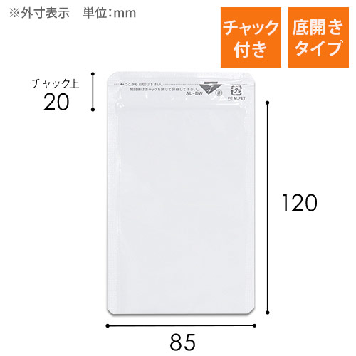 長期保存に適したアルミ素材で85×140(120)mm・白色のラミネート袋。低価格で利用でき、陳列時のスペースを取らない平袋タイプです。大手メーカーによる日本製の商品なので、長期保存するような食品も安心してご利用いただけます。