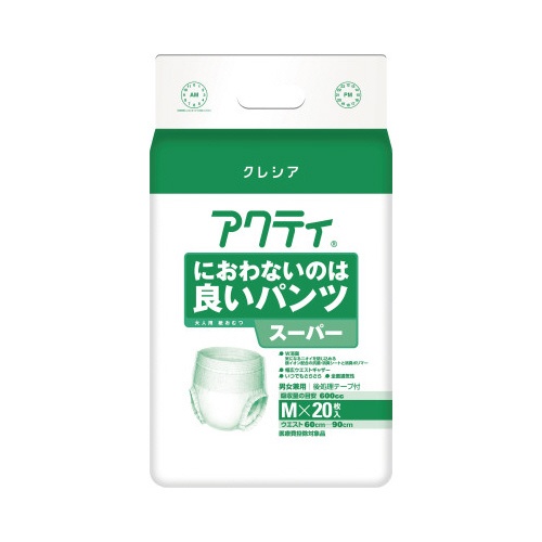 銀イオン消臭抗菌シートと高吸収ポリマーで、においも安心の大人用紙おむつ。Mサイズ、20枚×4箱。