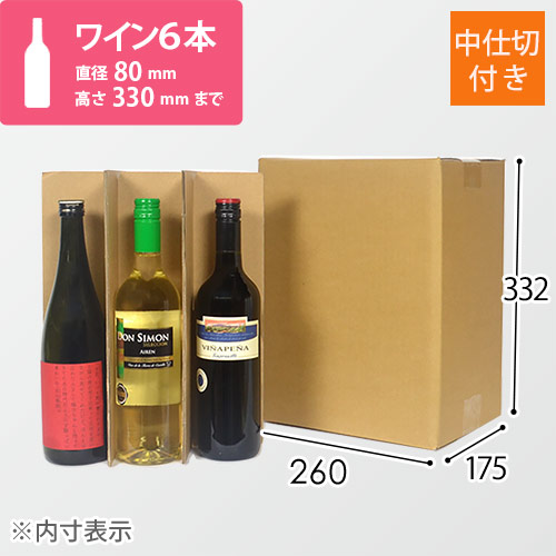 一般的な750mlワインボトルや、720mlの日本酒、焼酎、ジュースなどの瓶商品を6本発送する際に便利な宅配用段ボール箱です。